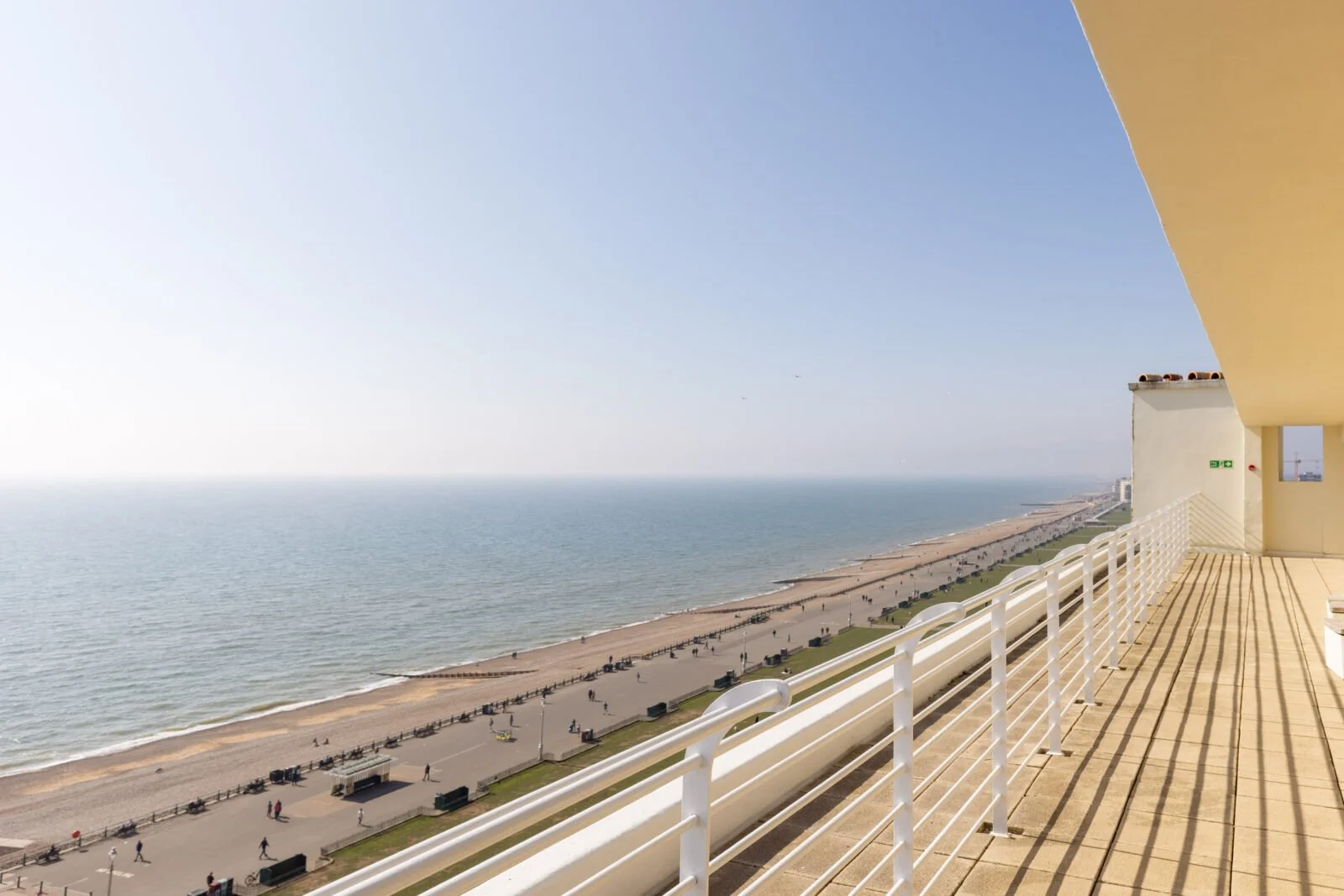 Embassy Court is an eleven-storey block of flats on the Brighton seafront, designed by Wells Coates and completed in 1935. It is amongst the most outstanding examples of pre-war Modernism in the UK, and has a grade II listed status. This beautiful, elegantly proportioned building contains seventy-three flats with direct sea views and is considered by many to be one of the coolest places to live in Britain. Its sculptural staircase and balconies echo Coates’ other building of 1934, the Isokon in Hampstead.